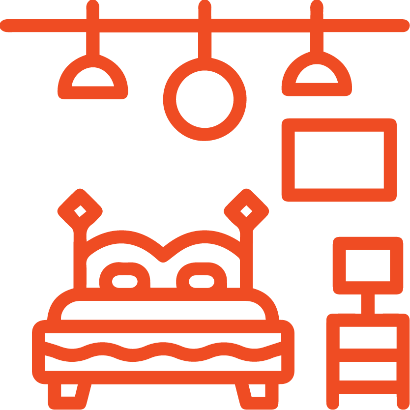 Our cozy suites are perfect for honeymoon couples, featuring two full-size beds, air conditioning, a private bathroom, a closet, a desk, and a flat-screen TV.